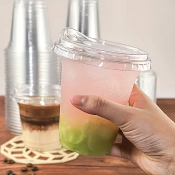 Wholesale Disposable Transparent Household Plastic Cup PET 98mm Lid for Coffee Tea Cold Drinks Take-out for Home Use