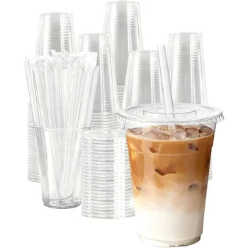 Custom LOGO 10/12/14/16OZ Disposable PET Plastic Cup for Ice Coffee Lemon Milk Tea Cold Beverage Drink Wine Beer Juice Cups